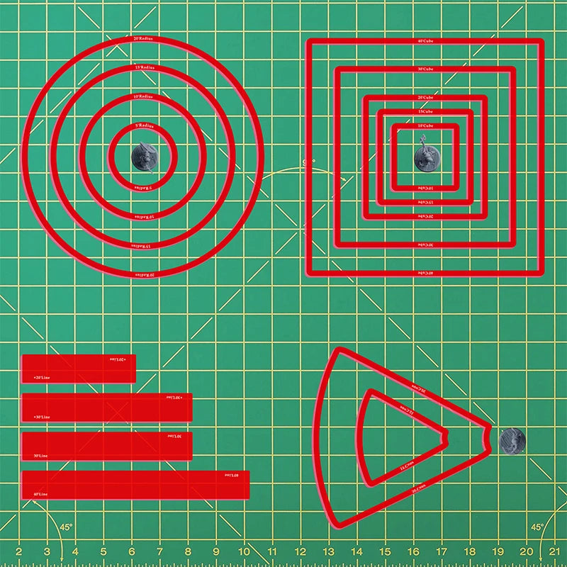 - Circle Templates: 5ft, 10ft, 15ft, 20ft radius